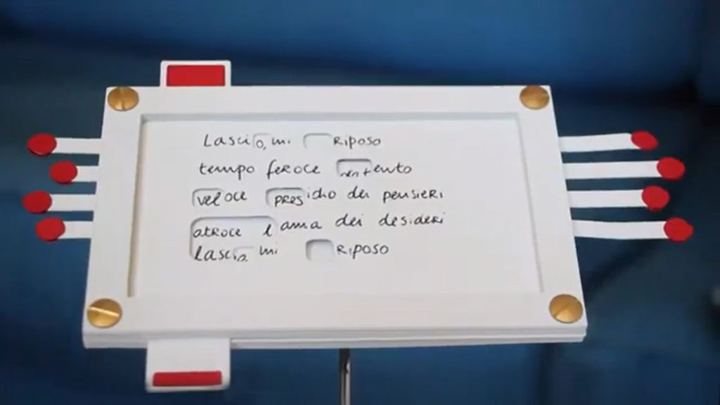 Dans l’écriture, selon moi, c’est important la question d’expérimenter le vrai rapport qu’il y a entre l’homme et la machine, parce que l’écriture technologique a comme objectif la lisibilité. On n’écrit pas à la main car on garantie la lisibilité de tous. Dans votre cas, au contraire, même pour rendre lisible le texte, vous avez voulu adjoindre la touche humaine, en englobant l’homme dans la machine même.